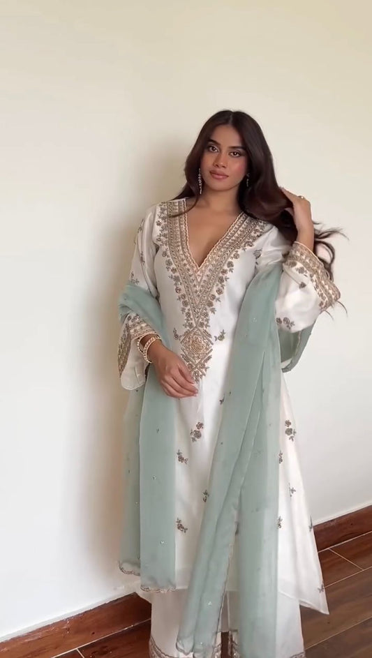 Pure Fendy Silk Embroidered Kurta & Palazzo Set with Heavy Sequin Work Dupatta