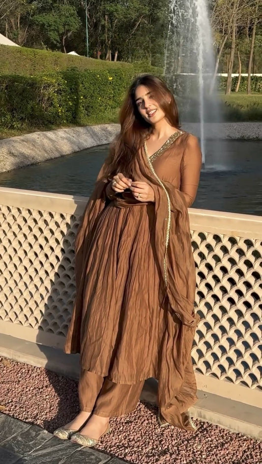 Chinon Silk Embroidered Designer Anarkali Suit Set