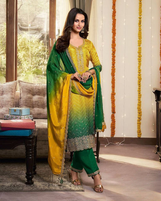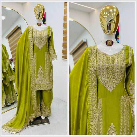Designer Crunchy Silk With Sequence Embroidery Palazzo Suit