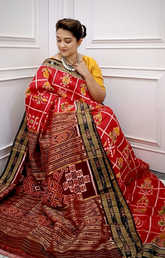 Coffee With Black Lotus Tarabali Khandua Silk Saree