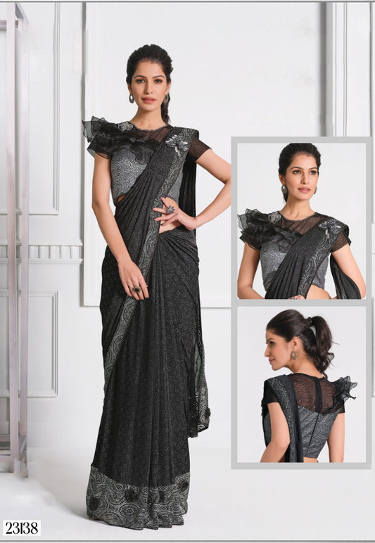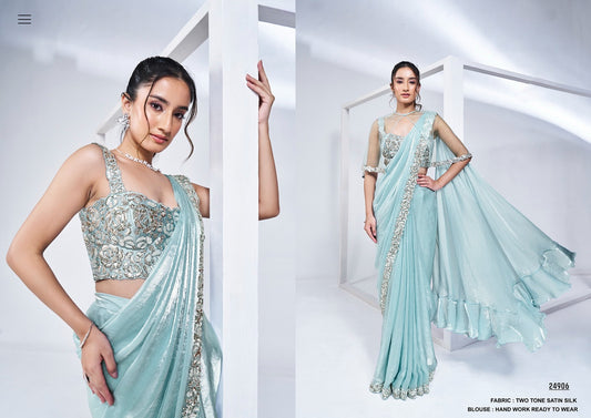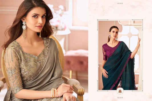 Designer Organza Saree with Sequins, Thread Lace Border and Diamond Work