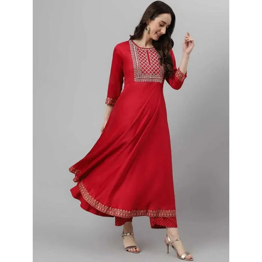 Designer Heavy Embroidery Work Red Salwar Suit Kurti