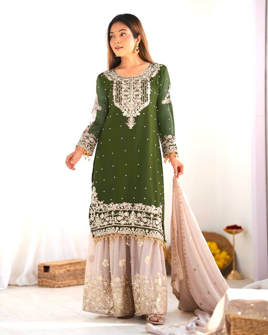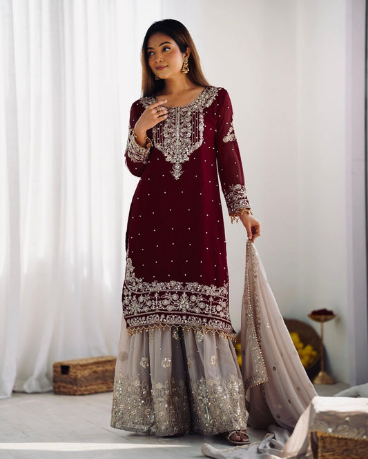 Elegant Heavy Faux Georgette Palazzo Set With Heavy Embroidery Sequence Work
