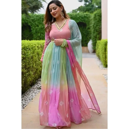 Faux Blooming With Embroidered Sequins- Work Gown & Dupatta