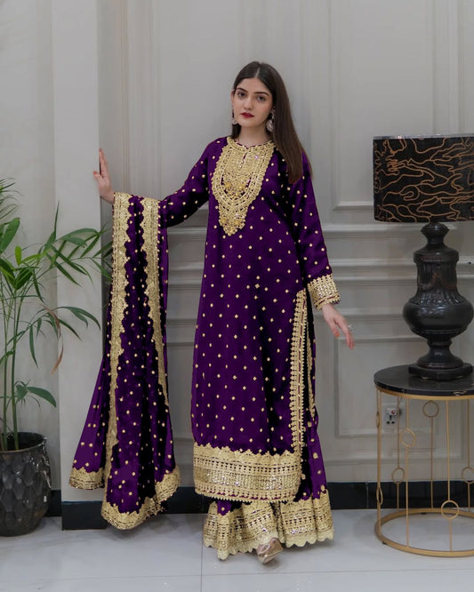 Faux Georgette Embroidered Kurta With Pant & Duppata