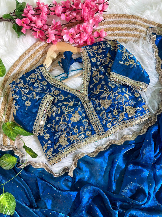 Soft Tebby Silk with Cutdana and Jarkhan Diamond Handwork with Satin Silk Blouse