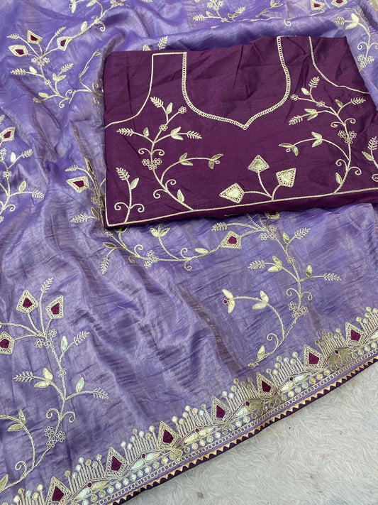 Pure Silk Embroidery Sequence Coding Work Saree with Blouse