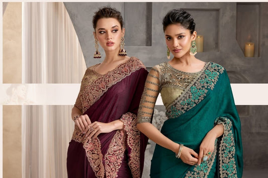 Sequence Dori Embroidery Net Embellished Heavy Diamond Work Lace Border Saree