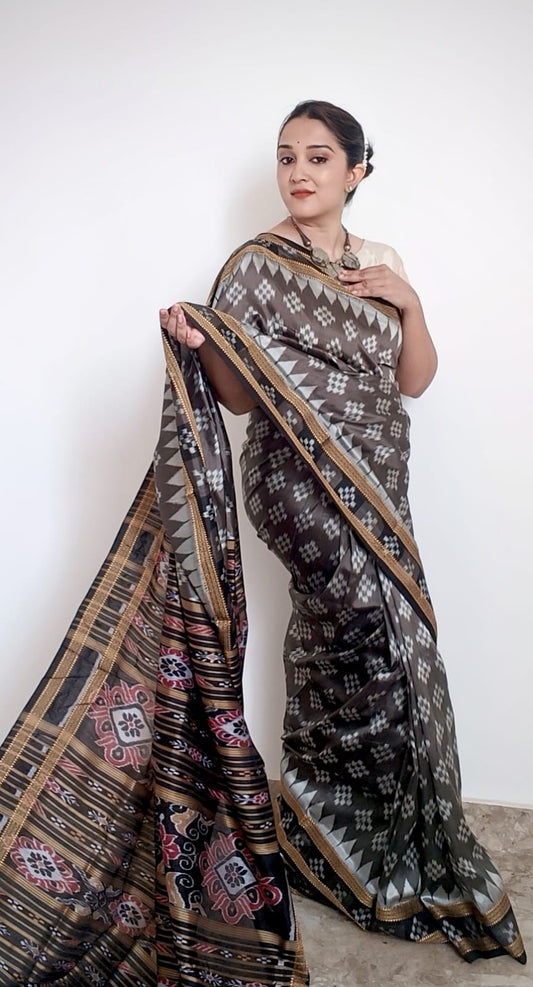 Coffee With Black Lotus Tarabali Khandua Silk Saree