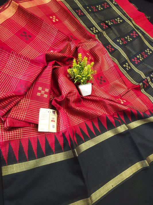 Pure Raw Silk Chhattisgarh Handloom Temple Border Design Saree