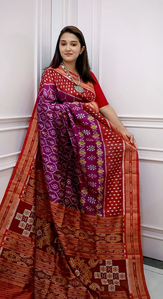 Light Purple With Red Combination Khandua Silk Saree 3 Ply Mulberry Silk