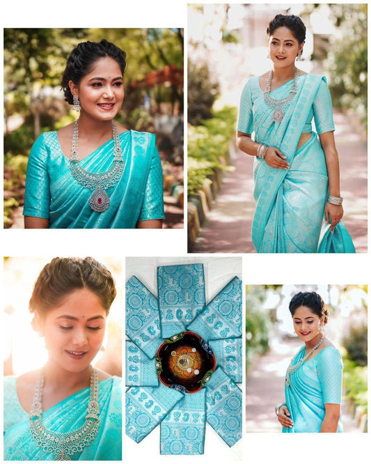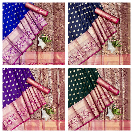 Pure Soft Lichi Silk Saree With Beautiful Zari Weaving With Mina Butta Work