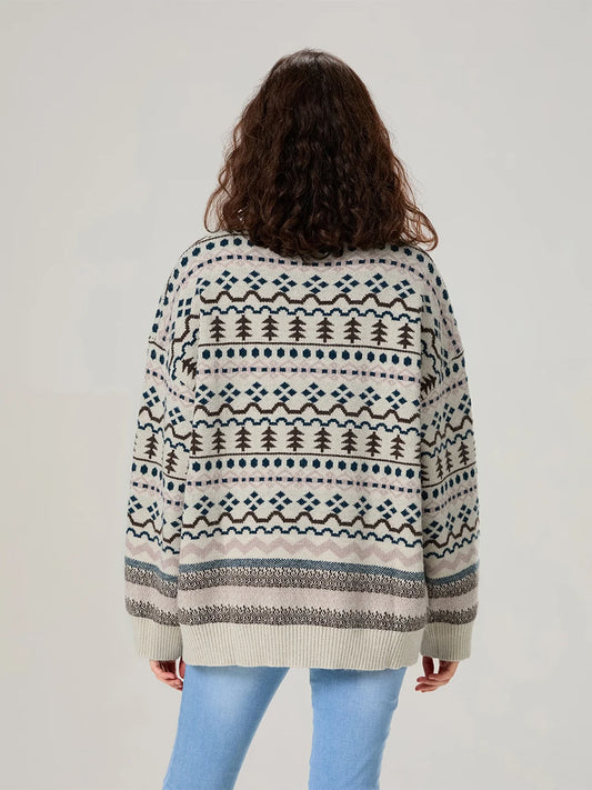 Women s Festive Reindeer Print Crew Neck Long Sleeve Knit Sweater