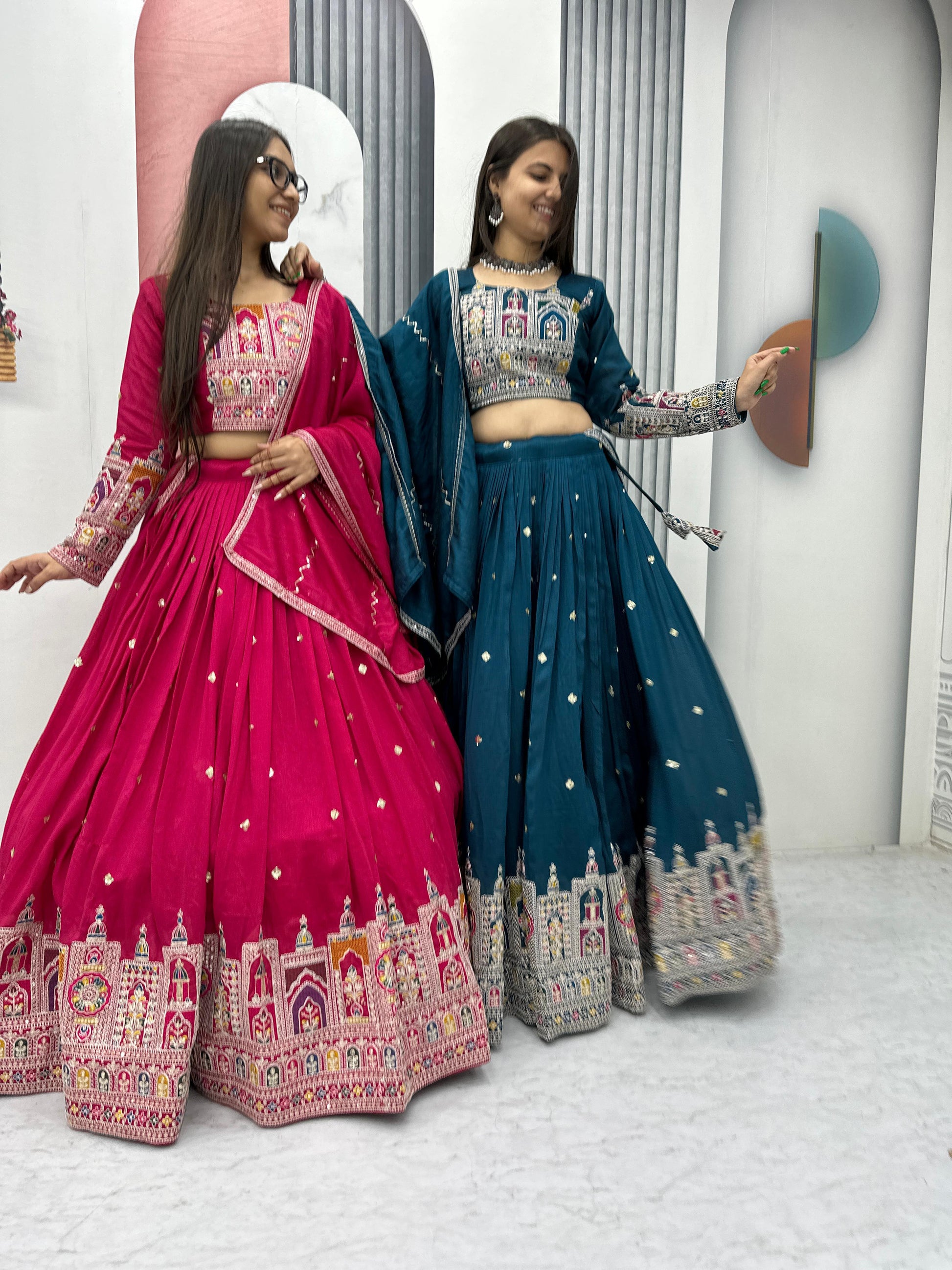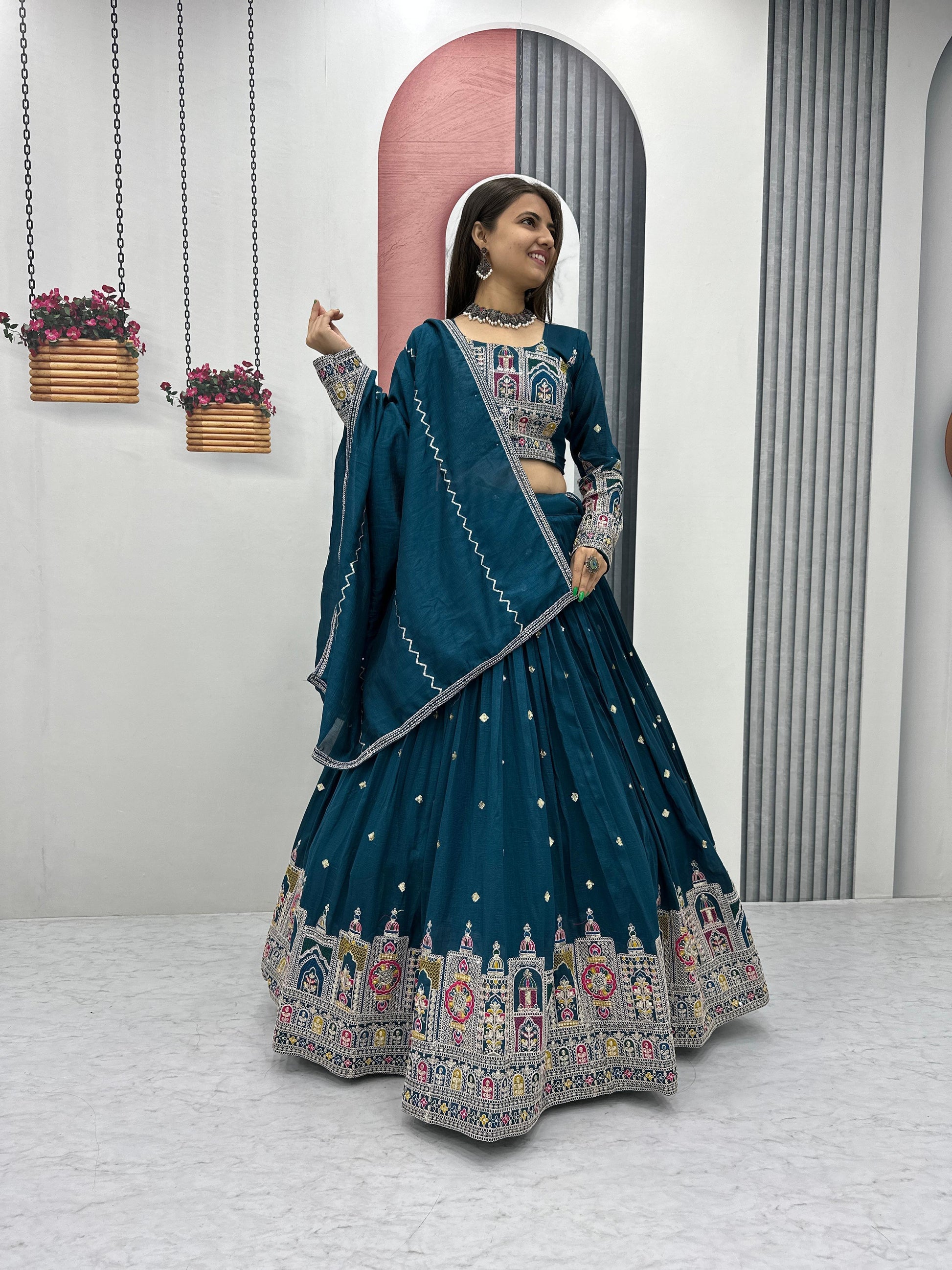 Designer Thread Embroidery Heavy Sequins Work Lehenga Choli With Dupatta