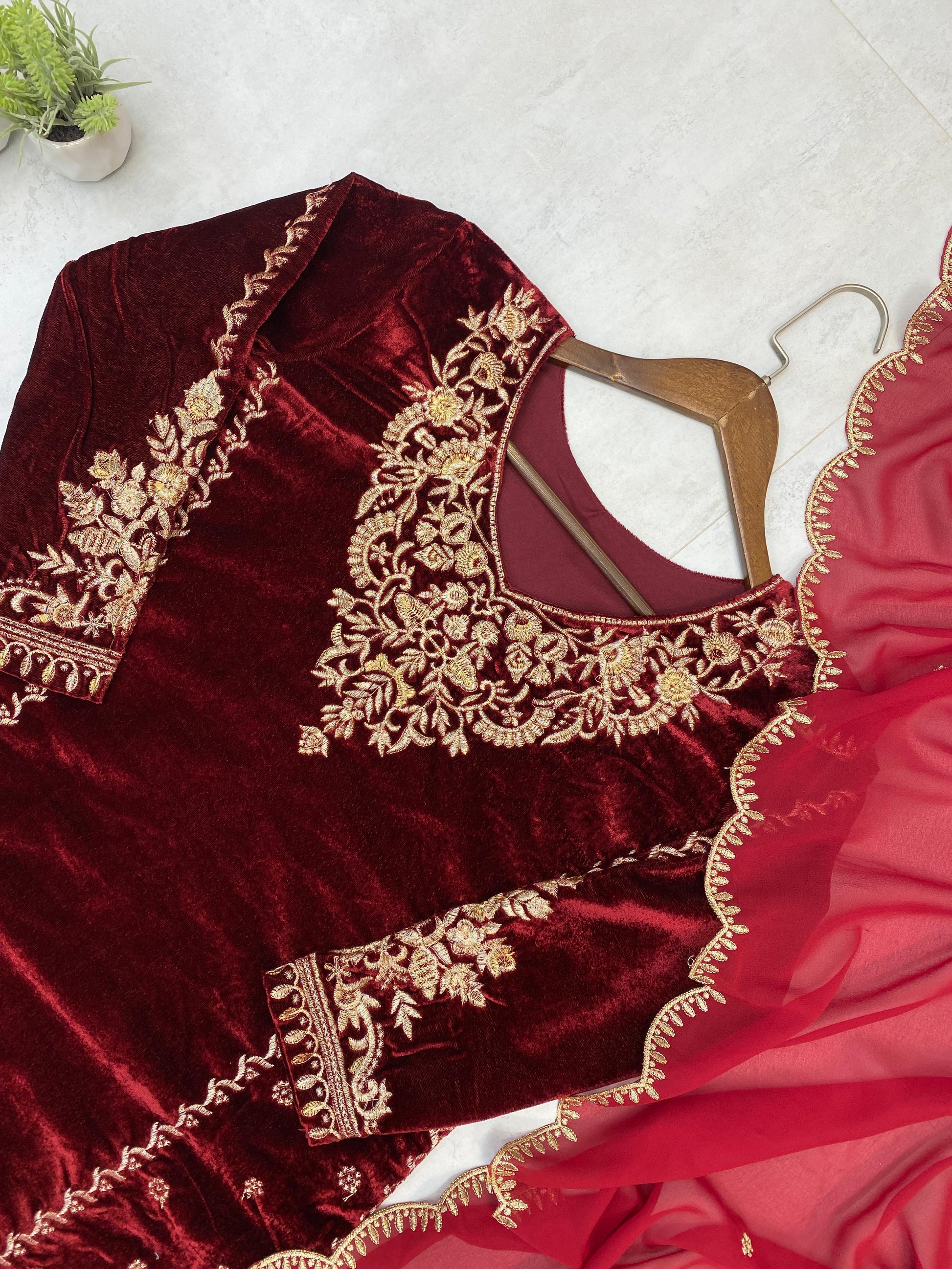 This Embroidered Velvet Palazzo Suit is where tradition meets modern sophistication—made for the woman who wants to feel confident, graceful, and radiant.