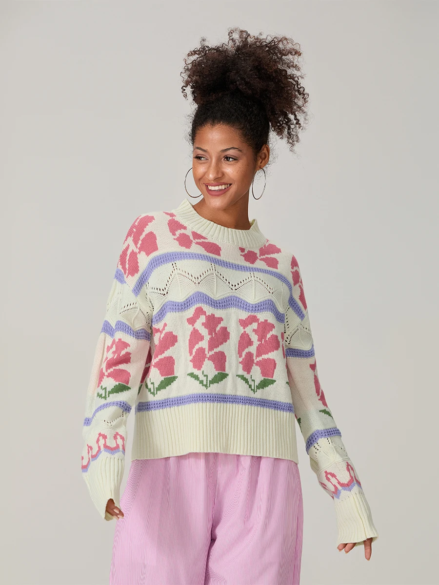 Women Knit Sweater Long Sleeve Crew Neck Flower Pullover Warm Sweater for Fall WinterIf there is one thing to add to your wardrobe in time for fall or winter, it is this sweater!