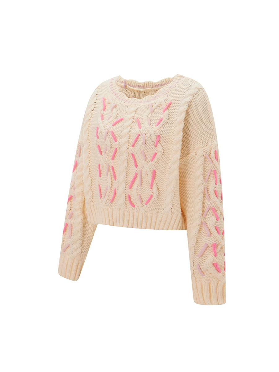 Women's Fall Crop Sweater Round Neck Long Sleeve Contrasting Color Loose Casual Fashion Pullover TopsSize (cm)