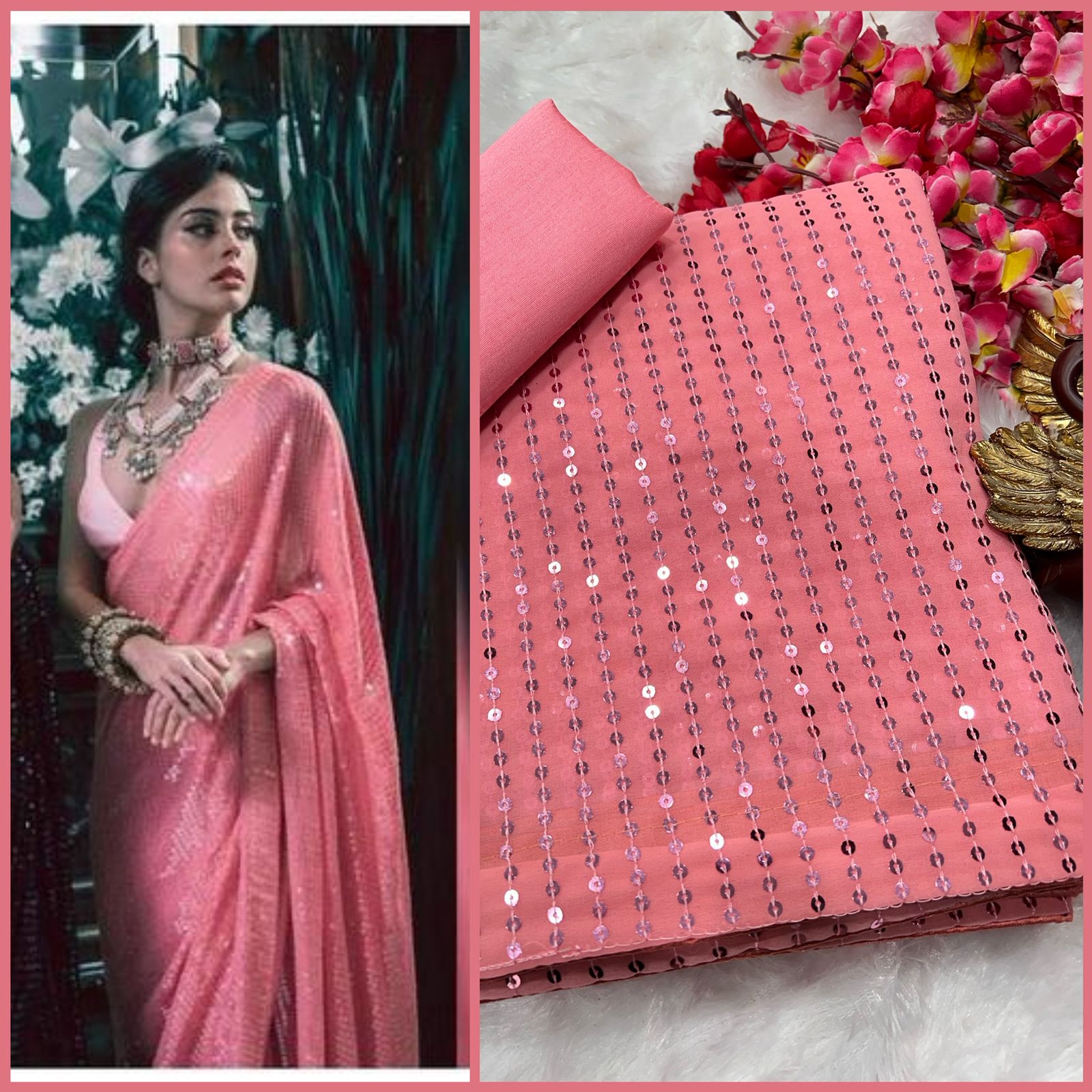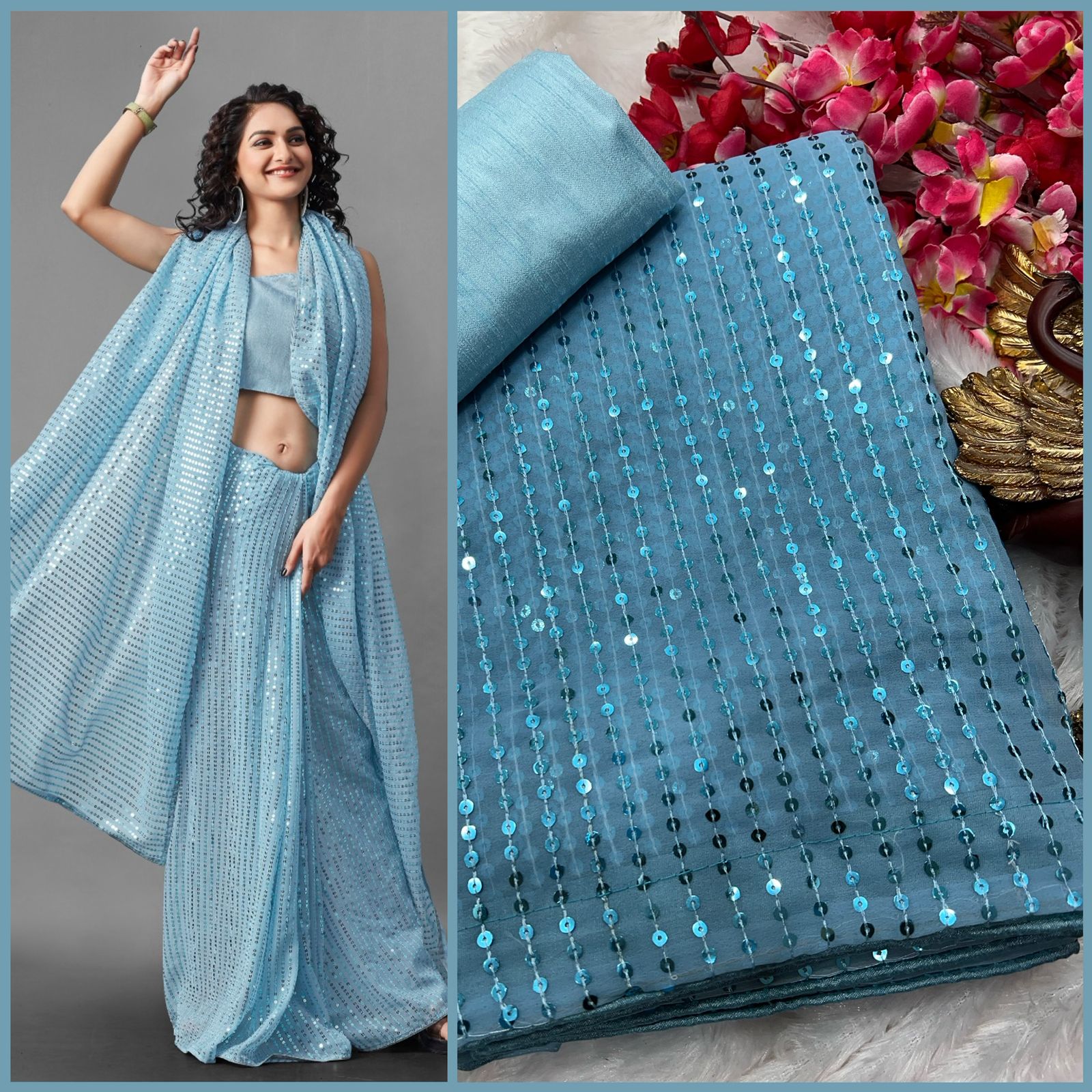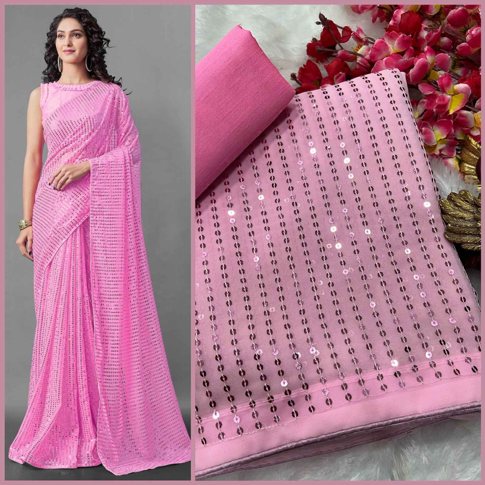 ✨ Women’s Georgette Sequin Embroidery Work Saree ✨